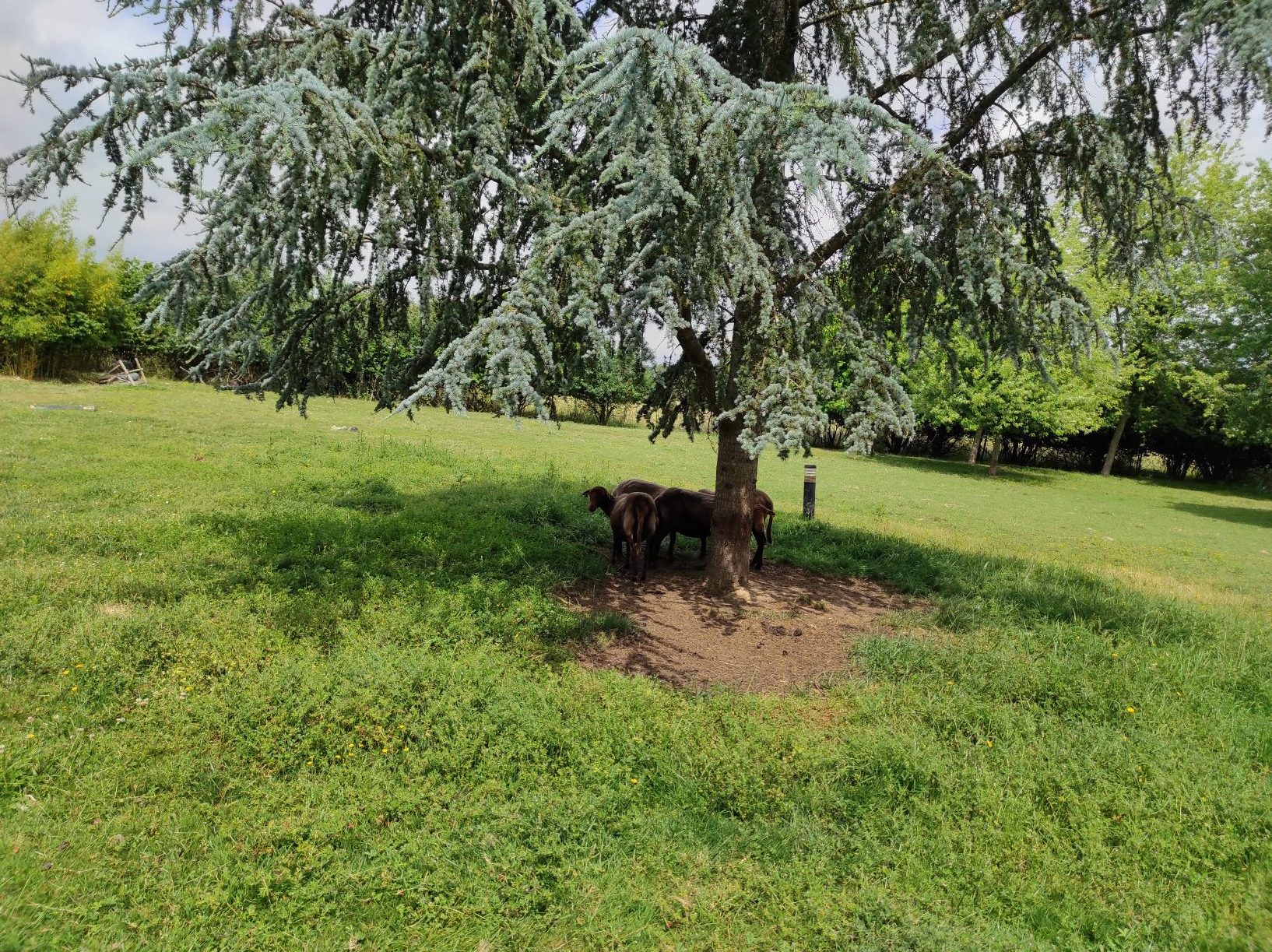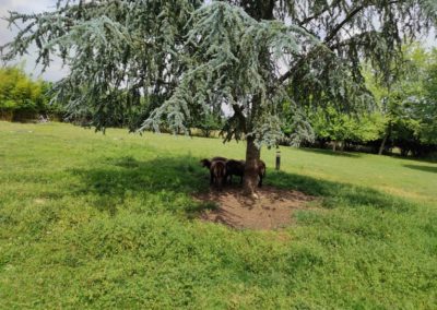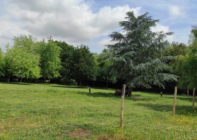 - Un patio arboré agrémenté d’une volière.